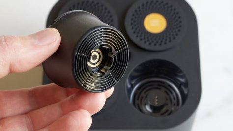 Laut Hersteller eignet sich Moodo für Räume bis etwa 55 Quadratmeter (600 ft2). Bei dieser Größe müssen die kleinen Turbinen jedoch schon ziemlich schnell drehen, was einerseits den Kapselverbrauch in die Höhe treibt und andererseits den Geräuschpegel. Auf voller Stufe finde ich den Moodo zu laut, aber selbst im Alltagsbetrieb sind die Lüfter im Raum zu hören, wenn es ruhig ist.